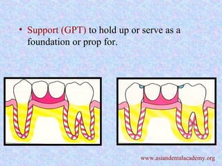 Rests and rest seats are components of removable partial dentures (RPDs) that serve to transfer forces from the denture to the abutment teeth. A rest seat is a prepared surface on a tooth into which a rest fits. Different types of rests include occlusal, cingulum, incisal, embrasure, onlay, internal/milled, and ledge rests. Rests help transfer forces, maintain the denture's position, restore arch continuity, and reestablish the plane of occlusion. Considerations for preparing rest seats include their size, shape, depth, and location relative to the tooth anatomy and occlusal plane. Composite or bonded resin can also be used to create rest seats