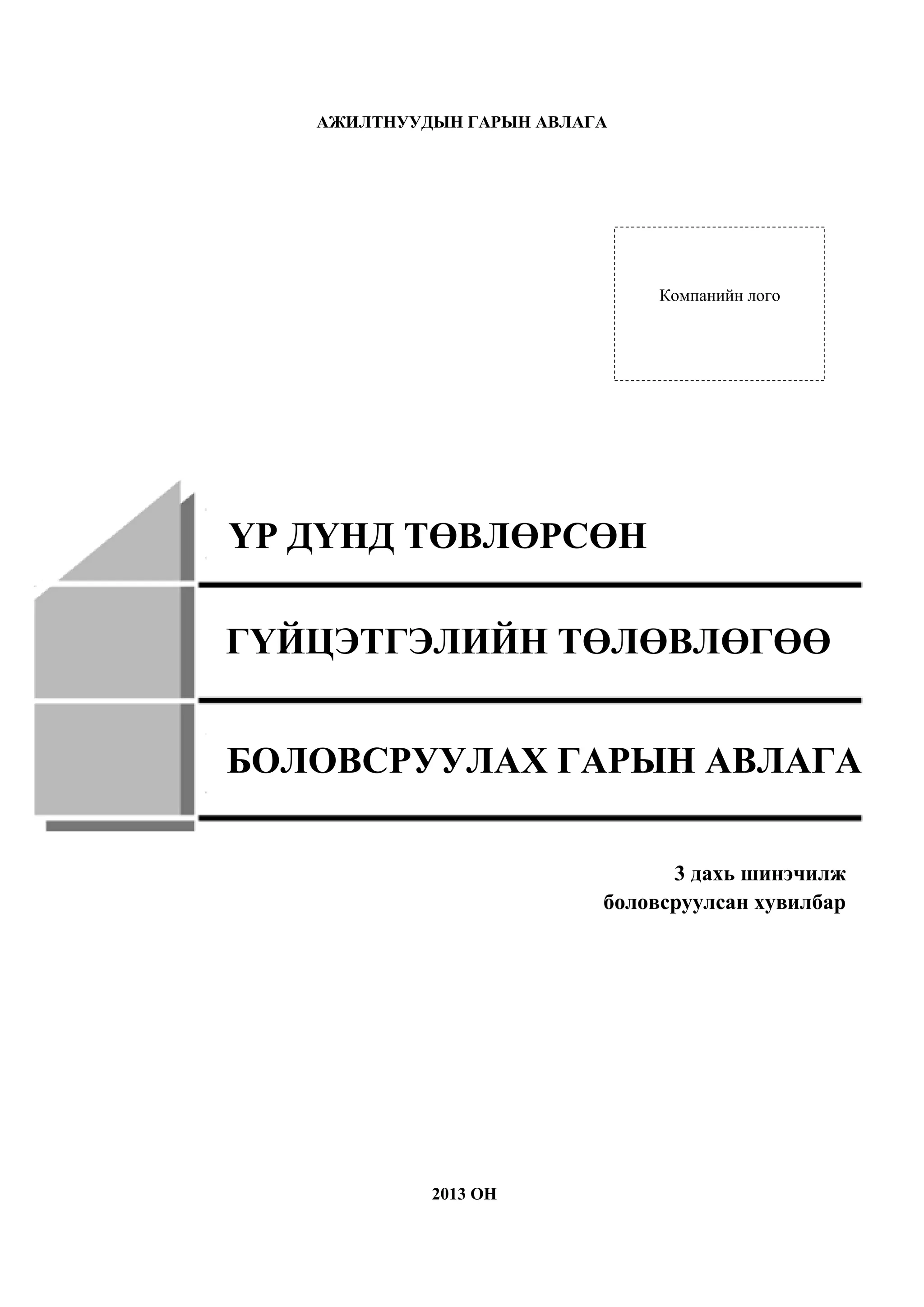 лого ҮР ДҮНД ТӨВЛӨРСӨН ГҮЙЦЭТГЭЛИЙН ТӨЛӨВЛӨГӨӨ БОЛОВСРУУЛАХ ГАРЫН АВЛАГА 3 дахь шинэчилж боловсруулсан хувилбар 2013 ОН Гүйцэтгэлийн төлөвлөгөө боловсруулах гарын авлага 1