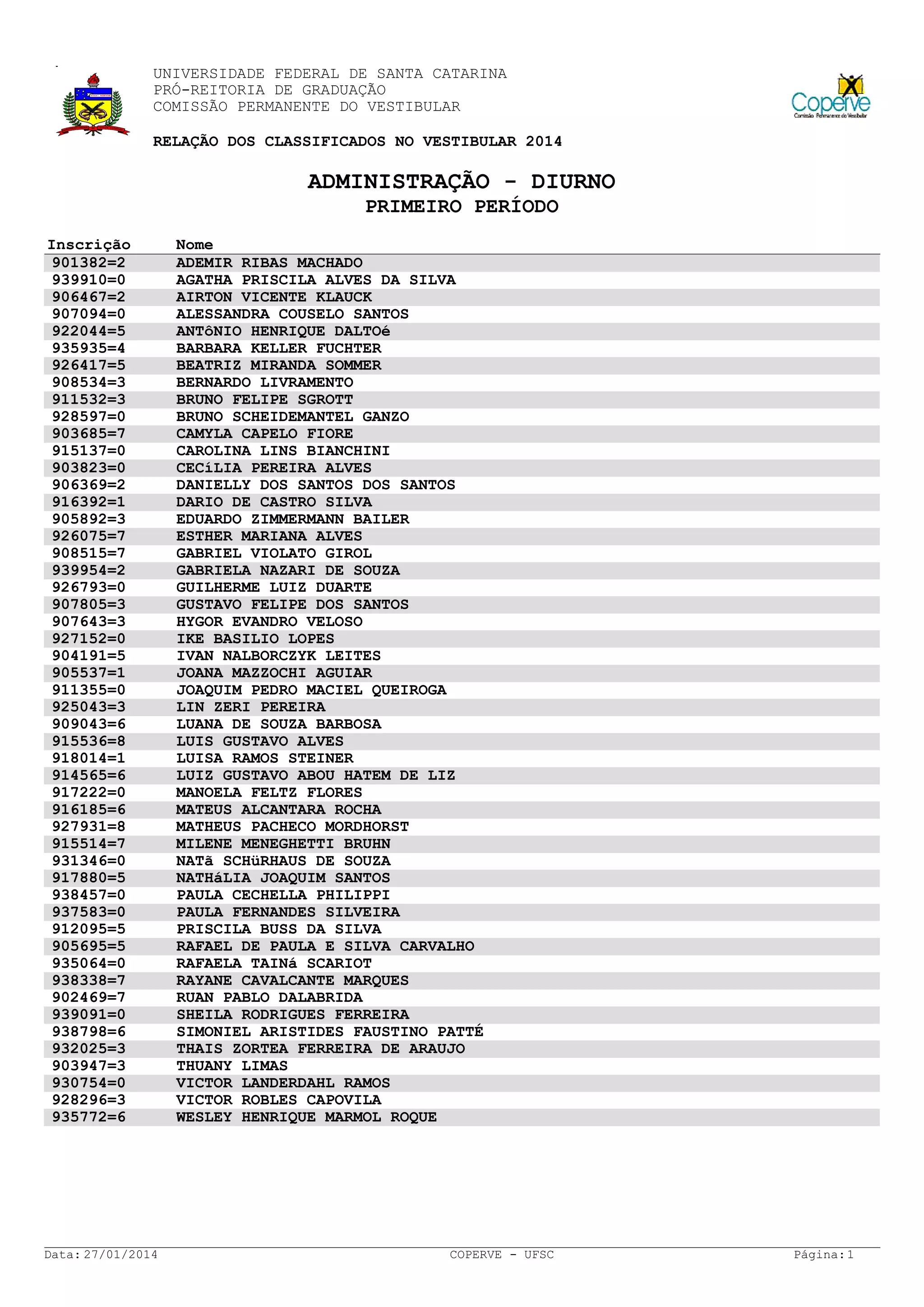 RELAÇÃO DOS CLASSIFICADOS NO VESTIBULAR 2014