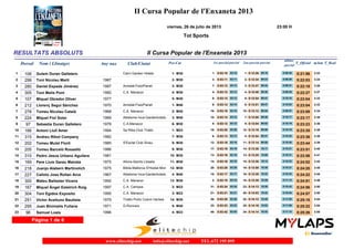 This document provides results from the II Popular Race of Enxaneta 2013 including name, age, club, time and placement for each of the top finishers. Guiem Duran Galletero from Cami Garden Hotels finished first with a time of 0:21:56. Toni Nicolau Martí from Manacor finished second at 0:22:03. Daniel Espada Jiménez from Amistat-FisioPlanet finished third at 0:22:18. The results list over 300 participants in the race providing details on their performance.