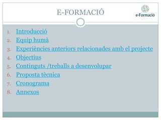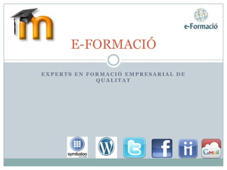 • e-Formació, empresa dedicada a l’elaboració i execució de projectes de formació professional de qualitat en línia amb l’objectiu de cobrir