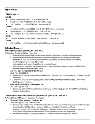 Kevin Franz is an architect and project manager with over 20 years of experience in various building types including retail, office, healthcare, and industrial. He has extensive experience leading projects from design through construction while achieving LEED certification. Some of his accomplishments include designing a revitalization project that provided a women's shelter and designing an office park restoration that increased revenue.