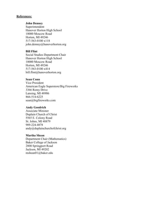 Donavon Hornbeck is seeking a position that utilizes his talents and strengths gained through his career as a teacher and manager. He has a Bachelor's degree in Political Science and Economics from Hope College and obtained additional teaching certifications from Baker College and Lansing Community College. Hornbeck has over 12 years of experience teaching secondary math and social studies at Hanover Horton High School. He also has experience as a tent coordinator for American Eagle/BigFireworks, managing 20 fireworks tents, and working as the communications director for a state senator. Hornbeck maintains a high GPA and was involved in varsity sports and other extracurricular activities during his education.