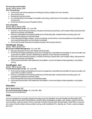Khadiza Massey has over 20 years of experience in finance, accounting, payroll, and billing management. She has worked in various roles such as accounting clerk, payroll manager, internal auditor, and division accountant clerk for companies in industries such as construction, healthcare, and staffing. Her skills include accounts payable, accounts receivable, payroll, financial reporting, auditing, and billing.