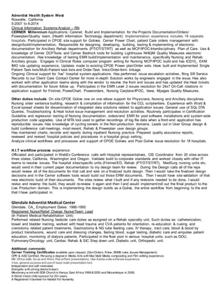 This document provides a summary of Jan Taylor's qualifications and experience. She has over 30 years of experience as a registered nurse and clinical analyst consultant specializing in Cerner applications. She has expertise in building, implementing, and supporting Cerner PowerChart, Carenet, and other electronic health record applications. She is proficient in clinical workflows, documentation, orders management, and quality measures reporting. She has helped optimize EMR systems and resolve issues at multiple hospitals.