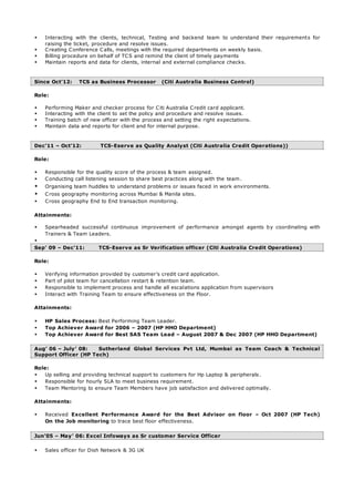 Bhavin S Bheda is seeking a new opportunity to grow professionally and personally. He has over 9 years of experience in customer service, sales, technical support, verification, quality control, and business coordination for well-known organizations. His skills include coordinating between stakeholders, performing quality checks, and implementing continuous improvements. He is proficient in Microsoft Office applications and seeks to work in a competitive environment that provides new challenges.