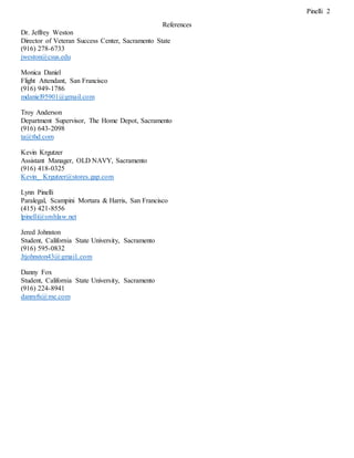 Bryan Pinelli is seeking an accounting position to further develop his skills. He has a Master of Business Administration in Accountancy expected in Fall 2016 from University of the Southwest in New Mexico and a Bachelor of Science in Business Administration in Accountancy from California State University Sacramento. Pinelli has experience in sales, receiving, freight, and home inspections. He is a veteran of the U.S. Navy and involved in veteran organizations on campus.