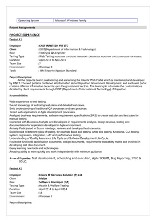 Sreenivasan.C is a testing engineer with over 3 years of experience in software testing. He has worked on various projects testing web, database, and application functionality for clients in industries like insurance, healthcare, and more. Some of his responsibilities have included creating test plans and cases, executing manual tests, defect tracking, and ensuring quality delivery. He is proficient in tools like JIRA and has experience with technologies like Agile methodology, SQL, and different testing types. He is looking to leverage his analytical and problem-solving skills in a challenging role at an esteemed organization.