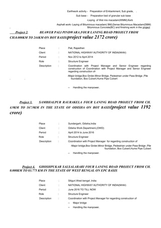 Bhuwan Chandra Joshi is a civil engineer with over 5 years of experience managing civil engineering projects. He has a diploma in civil engineering and has worked on several road and highway projects in India managing tasks like construction planning, quality control, and coordinating with clients and consultants. Currently he works as a structure engineer on the Ghoshpukari Salsalabari four-laning road project in West Bengal coordinating bridge construction and managing personnel.