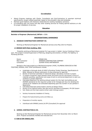 Mohammed Yousuff is a mechanical engineer with over 7 years of experience in design, site management, and coordination of HVAC, plumbing, and fire prevention systems for EPC projects in the Middle East and India. He is currently a Mechanical Engineer at Arabian Constraction Co. in KSA, where he manages the design and installation of mechanical systems. Yousuff has a bachelor's degree in mechanical engineering and certifications in air conditioning design, erection, and maintenance.