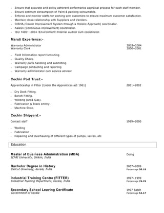 John Paul M.A. has over 12.7 years of experience in the automotive industry, primarily with Toyota and Maruti, specializing in service parts management and customer satisfaction. He holds an MBA and various certifications, demonstrating skills in inventory control, training, and continuous improvement. His professional background includes roles from parts supervisor to parts manager, with achievements in customer service and operational efficiency.