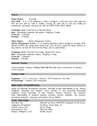 Kanak Shri Sharma is seeking a job that provides growth, excellence and satisfaction. She has a Bachelor's degree in Computer Science Engineering from Sushila Devi Bansal College of Technology with honors and over 76% aggregate. She has 3+ years of work experience as a Business Development Executive, Junior Programmer and Game Deployer. Her technical skills include languages like Java, C++, .NET and tools like Microsoft SQL Server, NetBeans, Visual Studio. She has strong communication, problem solving and analytical abilities.