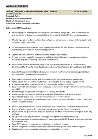 Mostafa Sayed Sayed has 9 years of experience in MEP project management in Qatar and Egypt. He has worked as a Senior MEP Coordinator and Technical Office Engineer on various commercial and residential building projects. Mostafa is skilled in all aspects of MEP project management including planning, design, procurement, construction management, and handover. He holds a Bachelor's degree in Electrical Engineering and has extensive experience coordinating HVAC, plumbing, electrical, and fire protection systems.