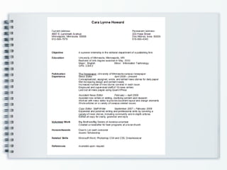 This document provides tips for preparing an effective resume. It discusses including an objective, education, work experience, accomplishments, and references on a resume. Key recommendations include using bullet points to describe duties, highlighting quantifiable achievements, and customizing the resume for each job application. The document also provides dos and don'ts for resume formatting, writing style, and content to create a strong self-promotional document.
