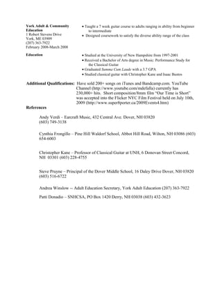 Matthew Lister has over 15 years of experience teaching guitar to students of all ages and skill levels. He has taught at various music schools and as a private instructor, with experience teaching classical, pop, jazz, rock, and other styles. Matthew also performs as a classical guitarist at various events. He holds a Bachelor of Arts degree in Music Performance from the University of New Hampshire, where he studied classical guitar.