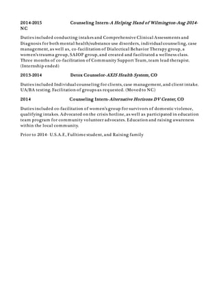 Donna Smith is a licensed professional counselor with extensive experience in individual and group counseling, case management, and comprehensive clinical assessments across multiple states. She holds a Master’s degree in Clinical Mental Health Counseling and is affiliated with professional organizations such as the National Certified Counselor and Chi Sigma Iota. Previously, she worked in various settings including inpatient treatment, outpatient services, and as a behavioral technician for children with autism.