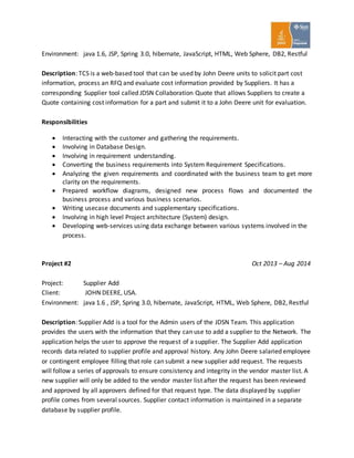 Rama Chowdari Lakamasani is a senior software engineer with over 6 years of experience developing applications using Java, Spring, Hibernate, and other technologies. They have extensive experience in all phases of the software development lifecycle including requirements gathering, design, development, testing, and support. Currently working as a senior analyst at Sonata Software developing applications for clients like John Deere.