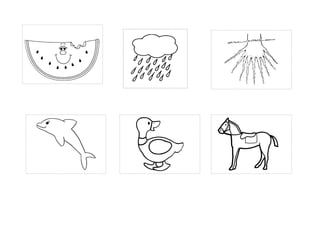 This document is a matching activity where a student is asked to match words like watermelon, horse, and dolphin with their corresponding pictures and write the words in the blanks provided. It contains pictures of common objects and animals along with blanks for the student to write the matching words to practice vocabulary words.