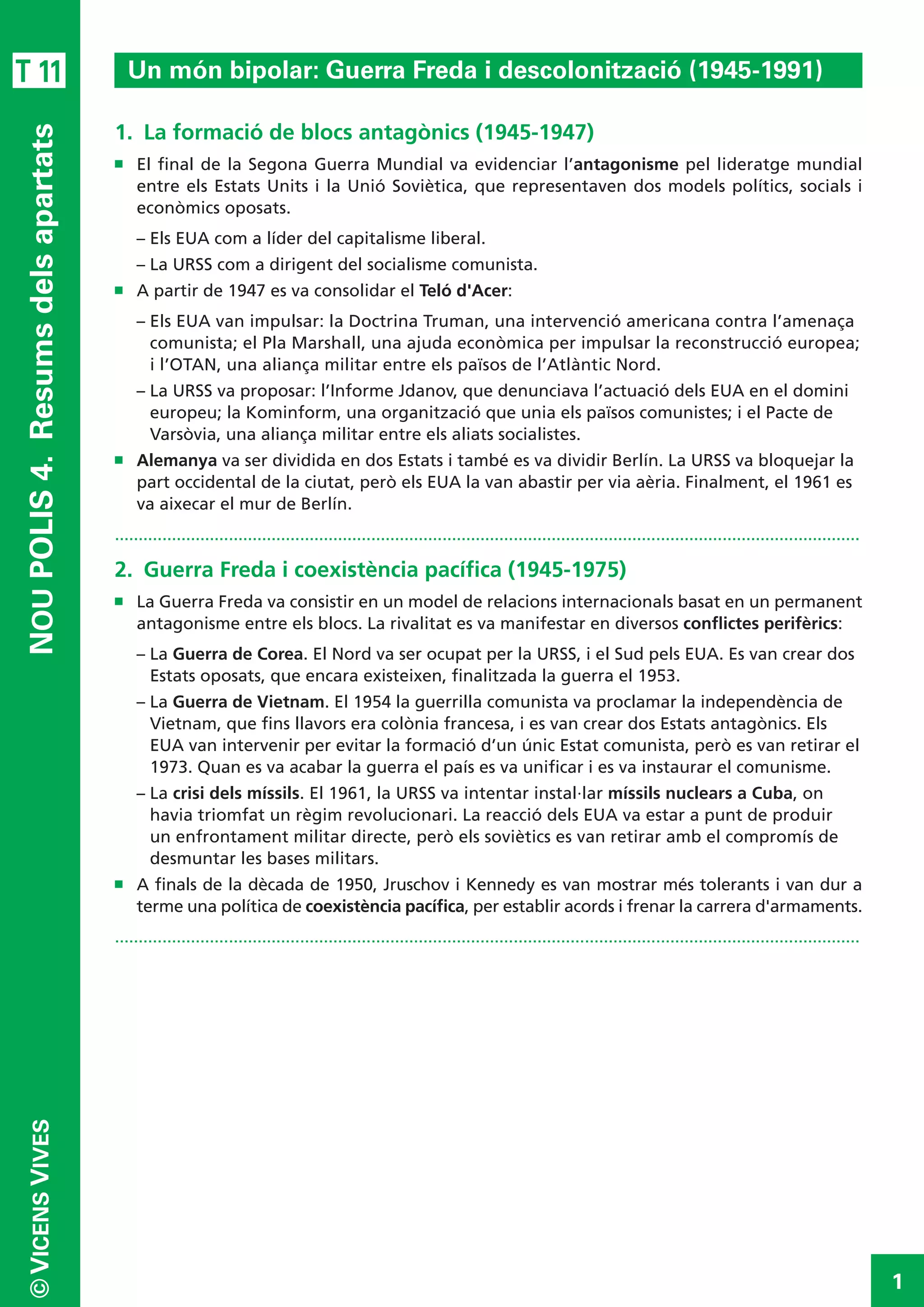 1 ©VICENSVIVES T 11 NOUPOLIS4. Resumsdelsapartats 1. La