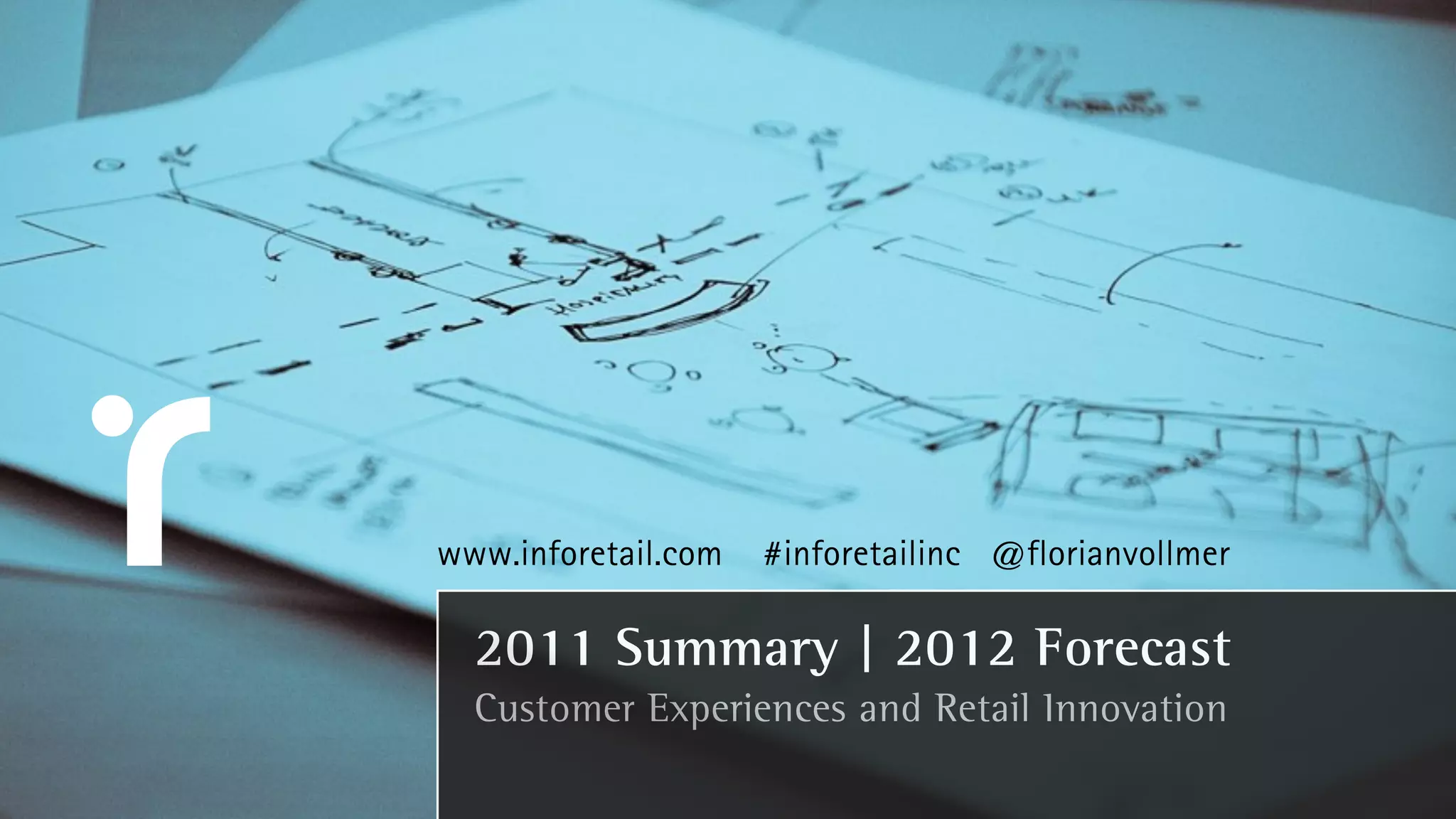 The document discusses key trends in retail and customer experiences in 2011 and provides a forecast for 2012. It touches on the rise of smartphones, social media, mobile payments, geofencing, augmented reality, QR codes, digital signage, and 3D printing. Retailers are advised to focus on contextual interactions, loyalty programs, omnichannel experiences, and using new technologies like artificial intelligence to provide personalized service to customers.