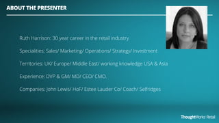 The document discusses digital transformation in the retail sector, focusing on how technology and customer engagement strategies can enhance the shopping experience. It highlights successful examples, such as Burberry's innovative use of technology for customer interaction and outlines emerging trends like mobile shopping and the need for flexible fulfillment options. Additionally, it emphasizes the importance of understanding customer journeys and adapting business models to meet evolving consumer expectations.