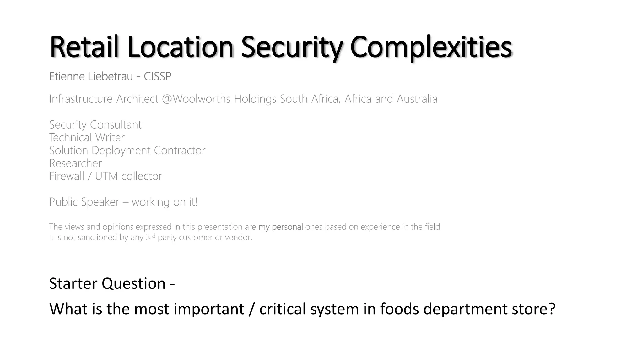 The document discusses security complexities in retail food department stores, focusing on critical systems and network segmentation. It highlights the vulnerabilities introduced by various devices, particularly in wireless networks, and emphasizes the need for advanced network management and security measures. The presentation suggests transitioning to automation and orchestrated firewalls to enhance connectivity and protect against threats across multiple retail locations.