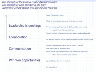 analysis and coordinate projects across the vendors represented in the Craft category.