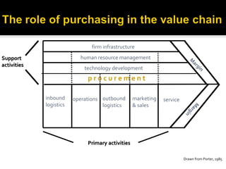 The document provides a detailed overview of supply chain and purchasing management concepts, emphasizing the importance of effective procurement and sourcing strategies in enhancing business profitability. It explores various categories of primary and support activities in the value chain, alongside key metrics for inventory management and sales performance. Additionally, it highlights the qualifications and expertise of Amit, a retail business consultant, underlining his role in driving innovation within the retail sector.