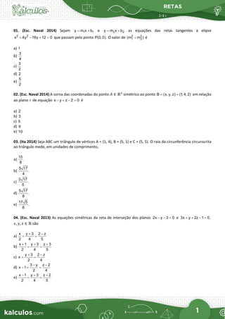 - Questions ask about finding equations of lines and planes, properties of triangles like circumscribed circles and distances between points, and determining coordinates of missing vertices.