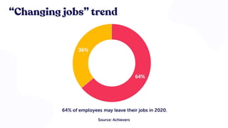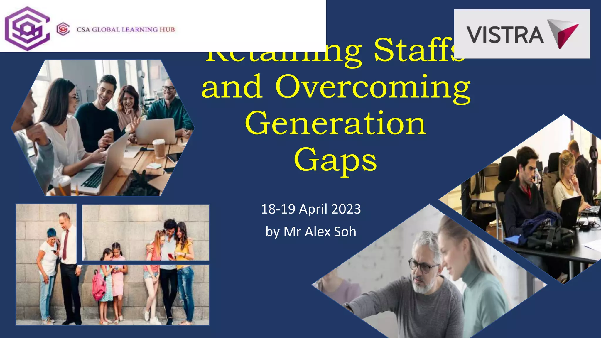 The document discusses strategies for retaining staff and overcoming generation gaps. It identifies common reasons employees resign, such as feeling undervalued, underpaid, or wanting more growth opportunities. Tips are provided for retaining employees like improving work-life balance, providing feedback and mentoring, recognizing contributions, and offering competitive compensation. Developing second-line leaders and keeping communication open are also emphasized.