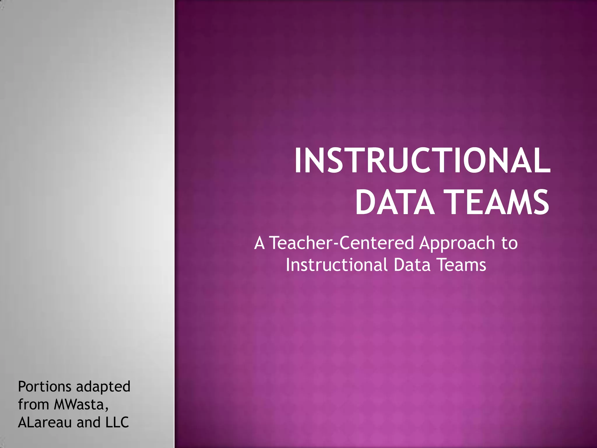 1. The document outlines the process for instructional data teams using a teacher-centered approach.