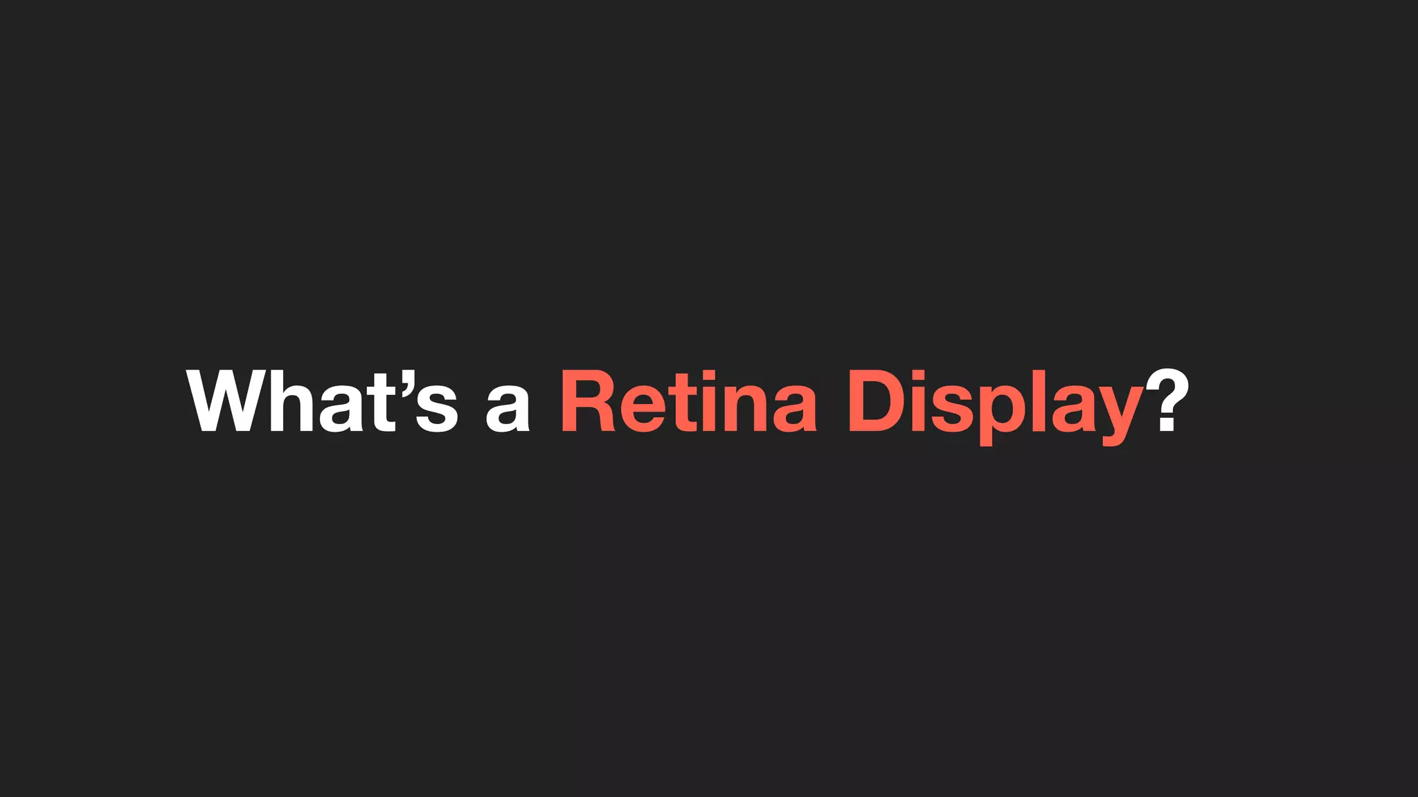 Retina Display refers to high pixel density displays with pixel densities of 300 ppi or greater. The iPhone 4 in 2010 was the first device to feature a Retina Display. Retina Displays split each pixel into four to reduce pixelation. Supported devices include various iPhones and iPads with resolutions ranging from 960x640 to 2880x1800. Designing and developing for Retina requires exporting images and vectors at double the resolution and using techniques like media queries for background images.