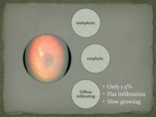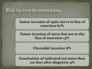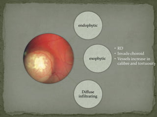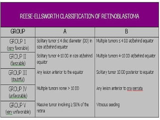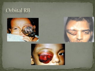 This document provides an overview of retinoblastoma, including: