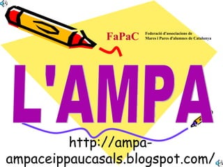 LINKS ENLLACIS D'INFORMACIONI COMUNICACION El Blog del ampa http://ampa-ampaceippaucasals.blogspot.com/ Mail [email_address] Foro per sugerencias y dudas http://server4.foros.net/ampapaucasals.html Facebook f http://www.facebook.com/