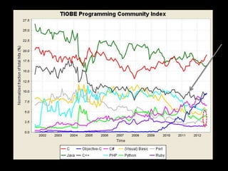 The document discusses C++ and its evolution over time. Some key points include:
