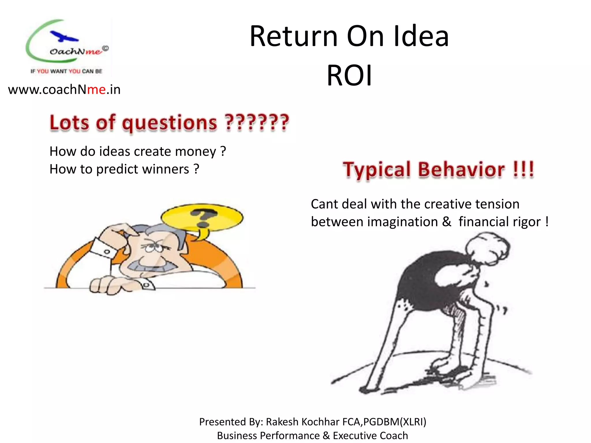 The document outlines strategies for evaluating and predicting the financial value of innovative ideas in a business context, emphasizing the importance of imagination and customer feedback. It discusses the idea benefit cycle and offers guidance on managing uncertainty, co-creating ideas, and analyzing external factors that impact business success. A case study illustrates how coaching helped a supermarket entrepreneur pivot to a chain of convenience stores for sustainability and growth.