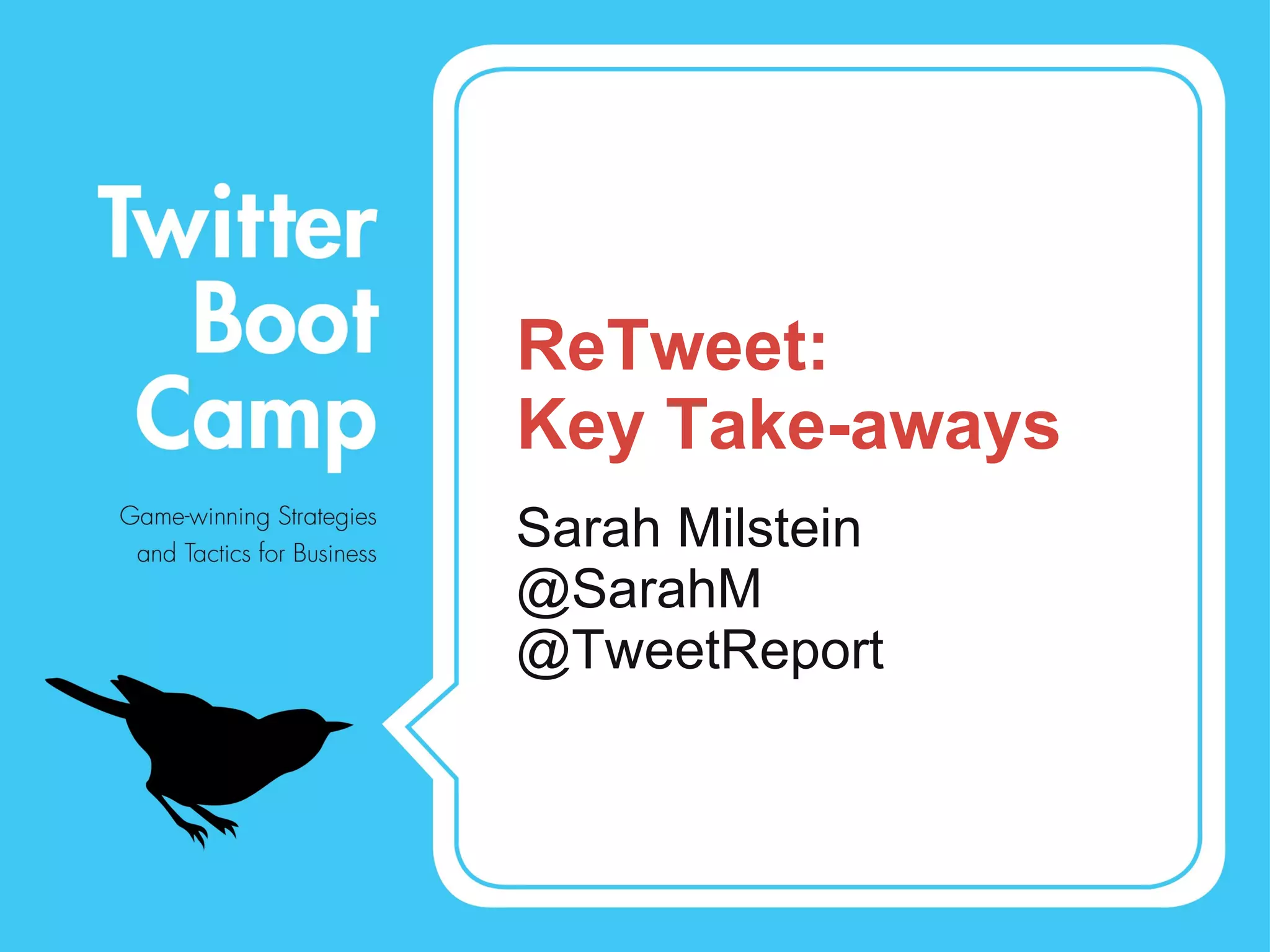 The document summarizes key points from a Twitter conference (#OTBC). It discusses that brands should add value to communities on Twitter rather than just promoting themselves. They should also humanize their approach by having a personality, being conversational, and focusing on passion rather than clicks. Additionally, brands should have a strategy and understand why they are using Twitter, whether for customer service, broadcasting news, or business development.