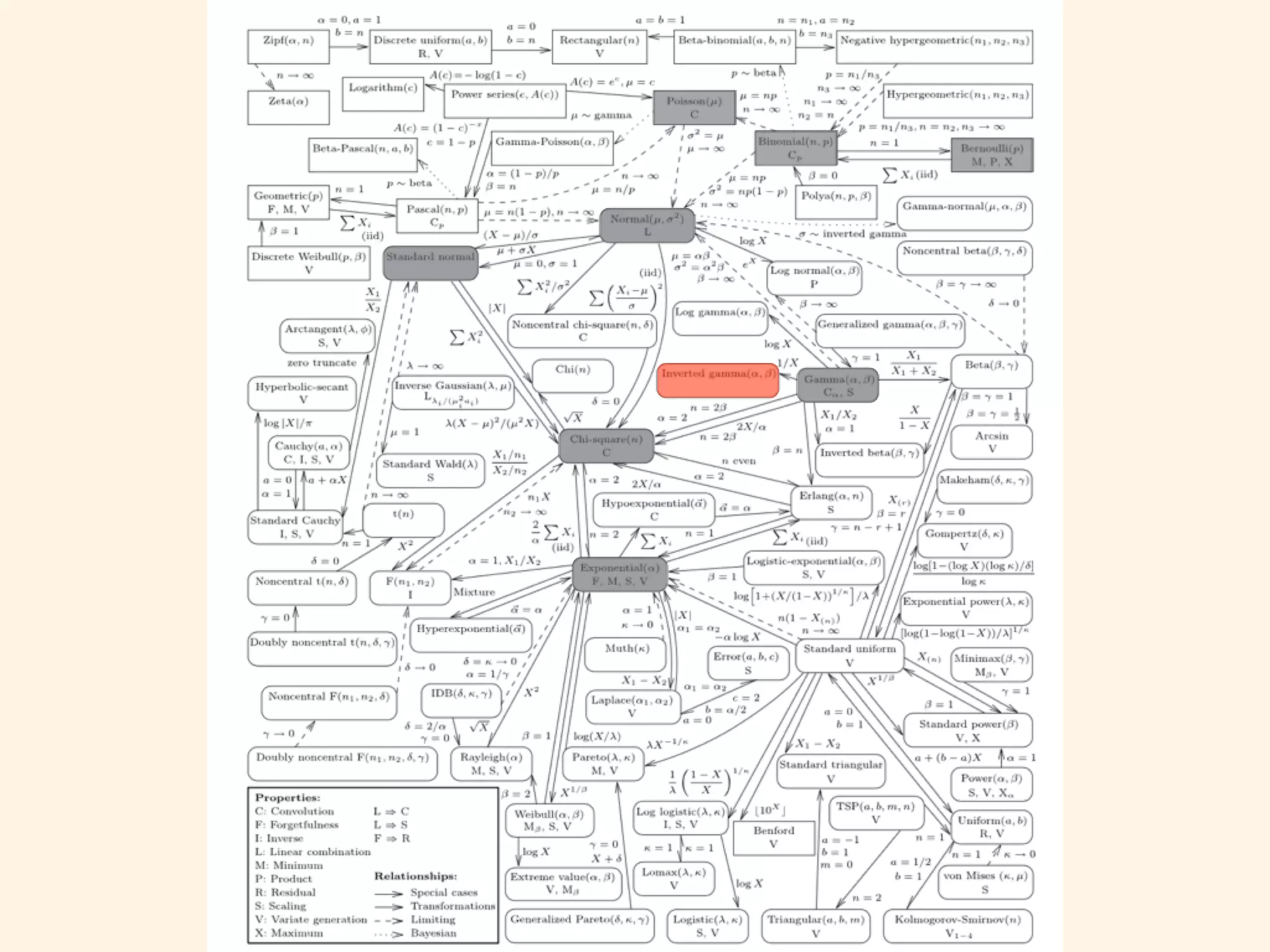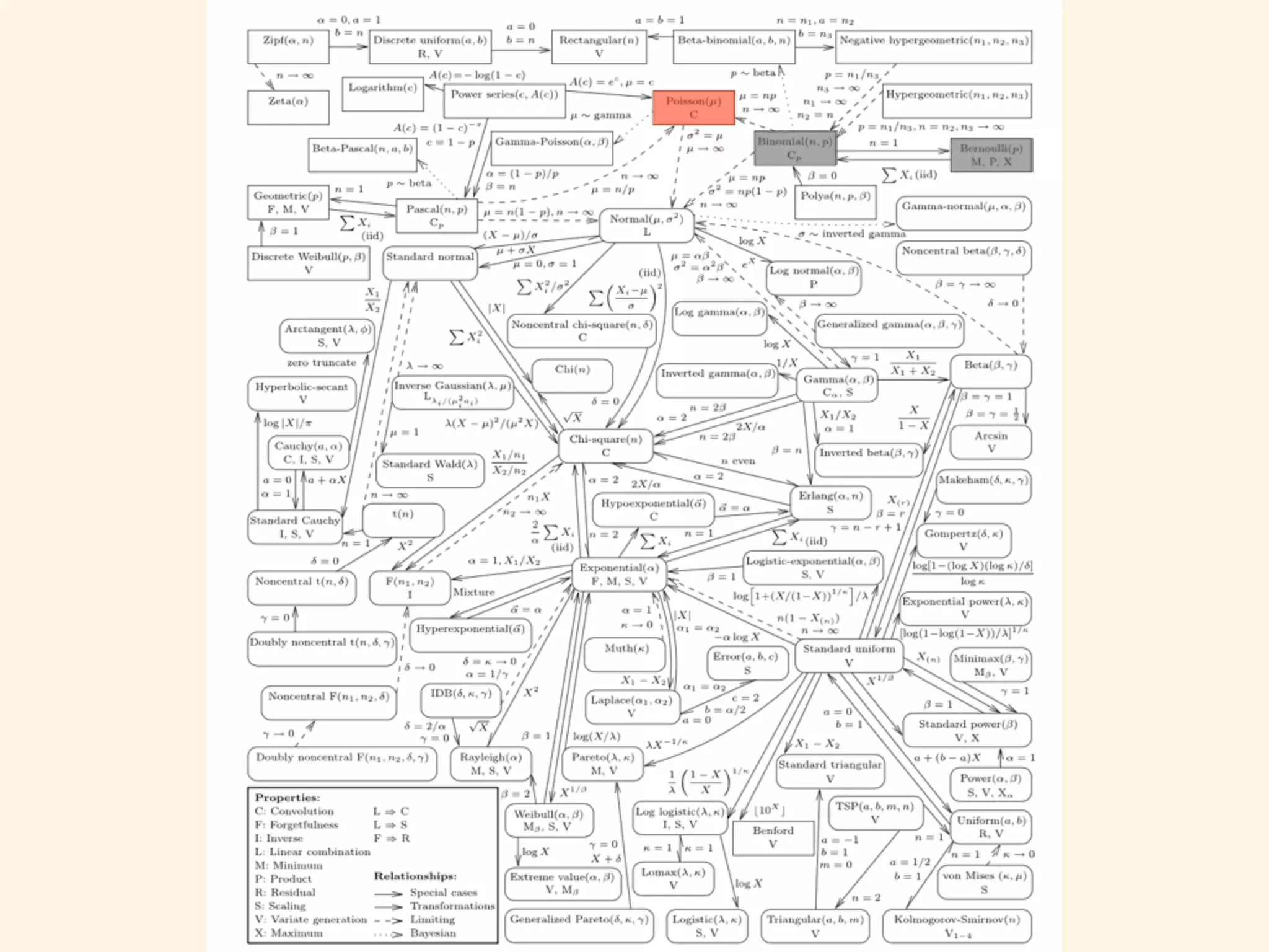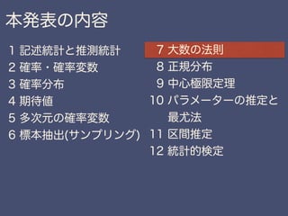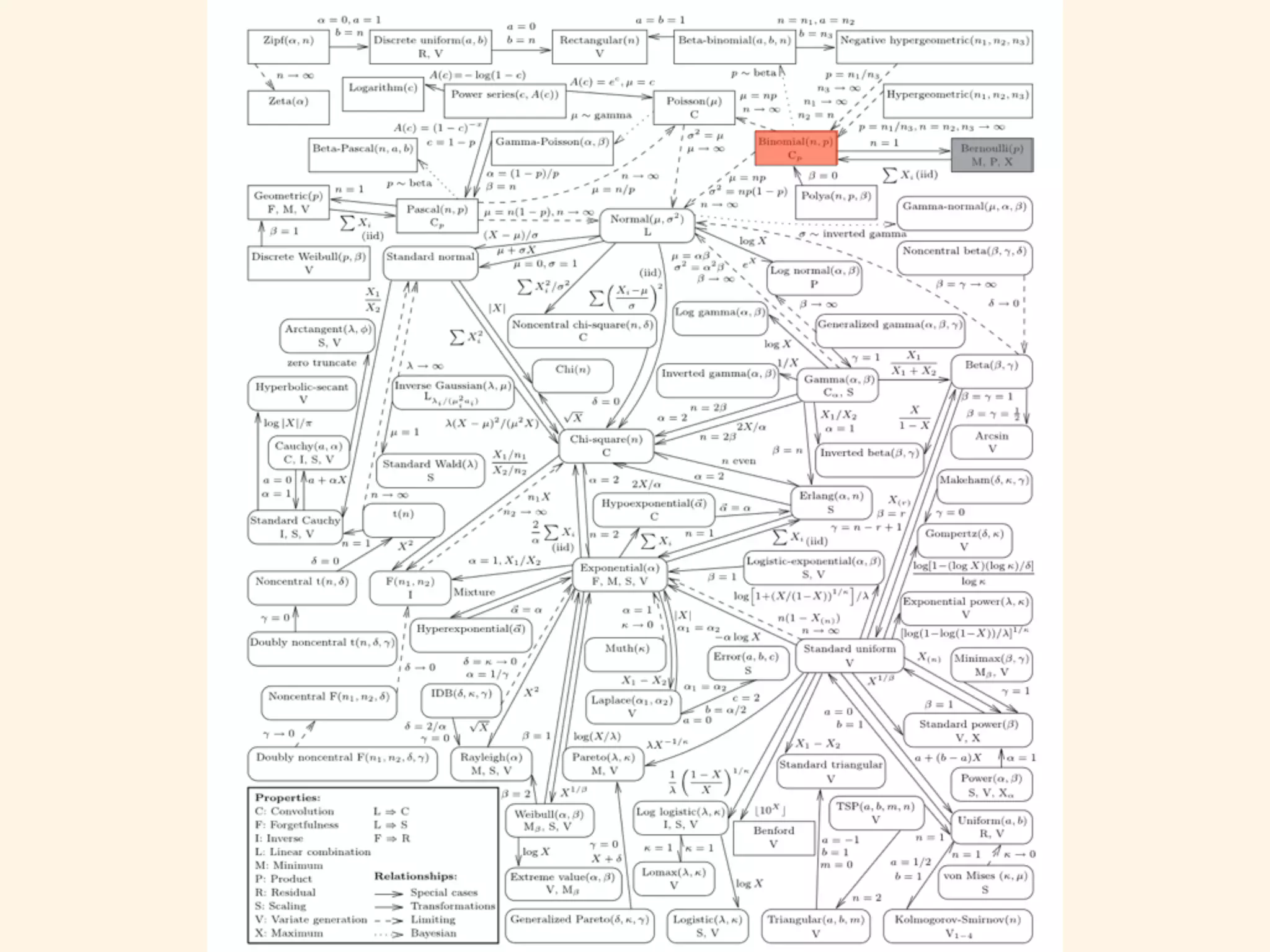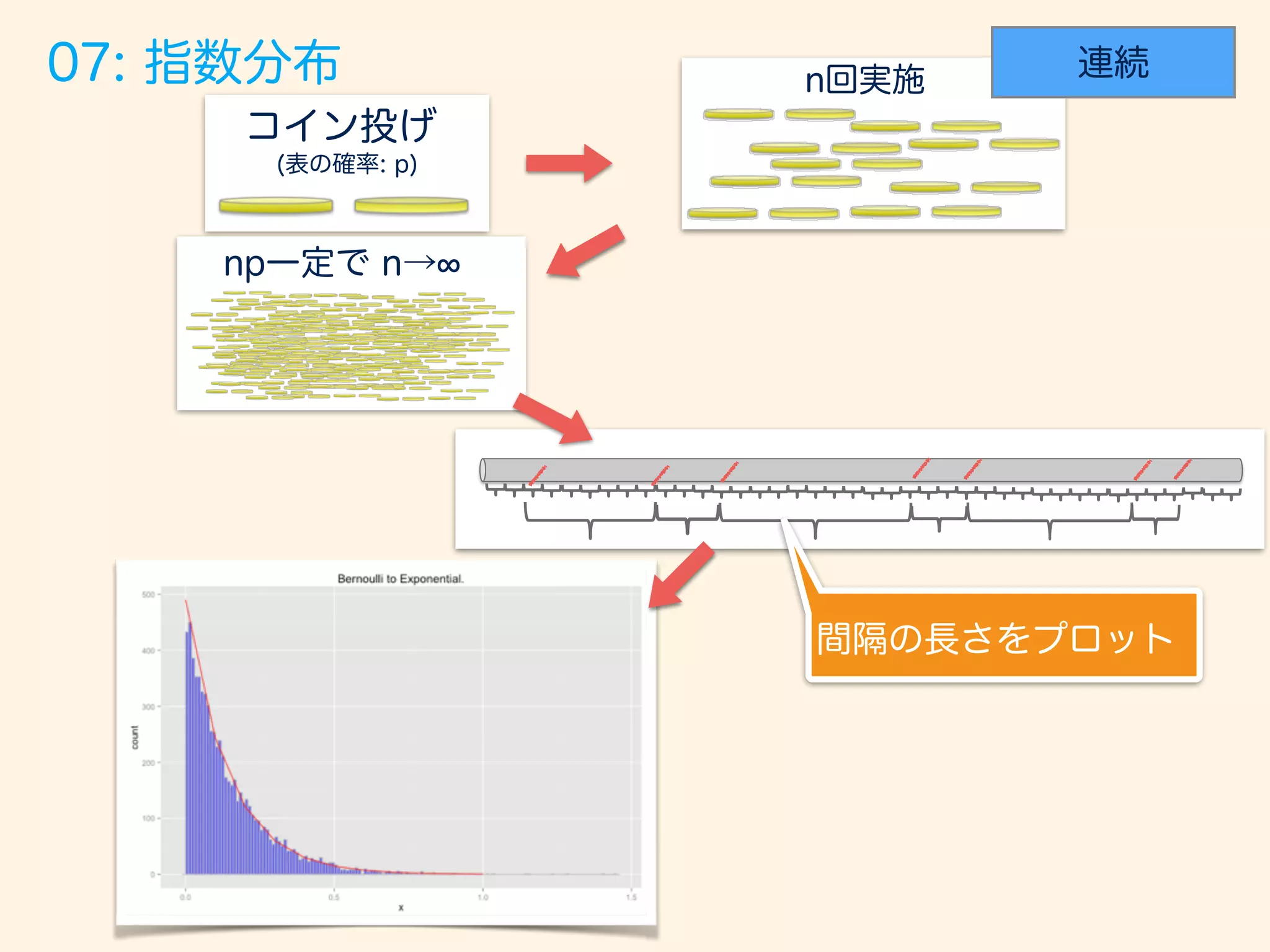 The document describes various probability distributions that can arise from combining Bernoulli random variables. It shows how a binomial distribution emerges from summing Bernoulli random variables, and how Poisson, normal, chi-squared, exponential, gamma, and inverse gamma distributions can approximate the binomial as the number of Bernoulli trials increases. Code examples in R are provided to simulate sampling from these distributions and compare the simulated distributions to their theoretical probability density functions.