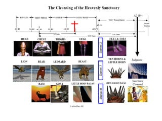 The document discusses the identity of the first beast mentioned in Revelation 14:9-11. It provides evidence from the Bible that the first beast represents the papacy, which ruled as a religious-political power for 1260 years from 538-1798 AD based in Rome. The papacy is said to have committed blasphemy by claiming the authority and attributes of God.