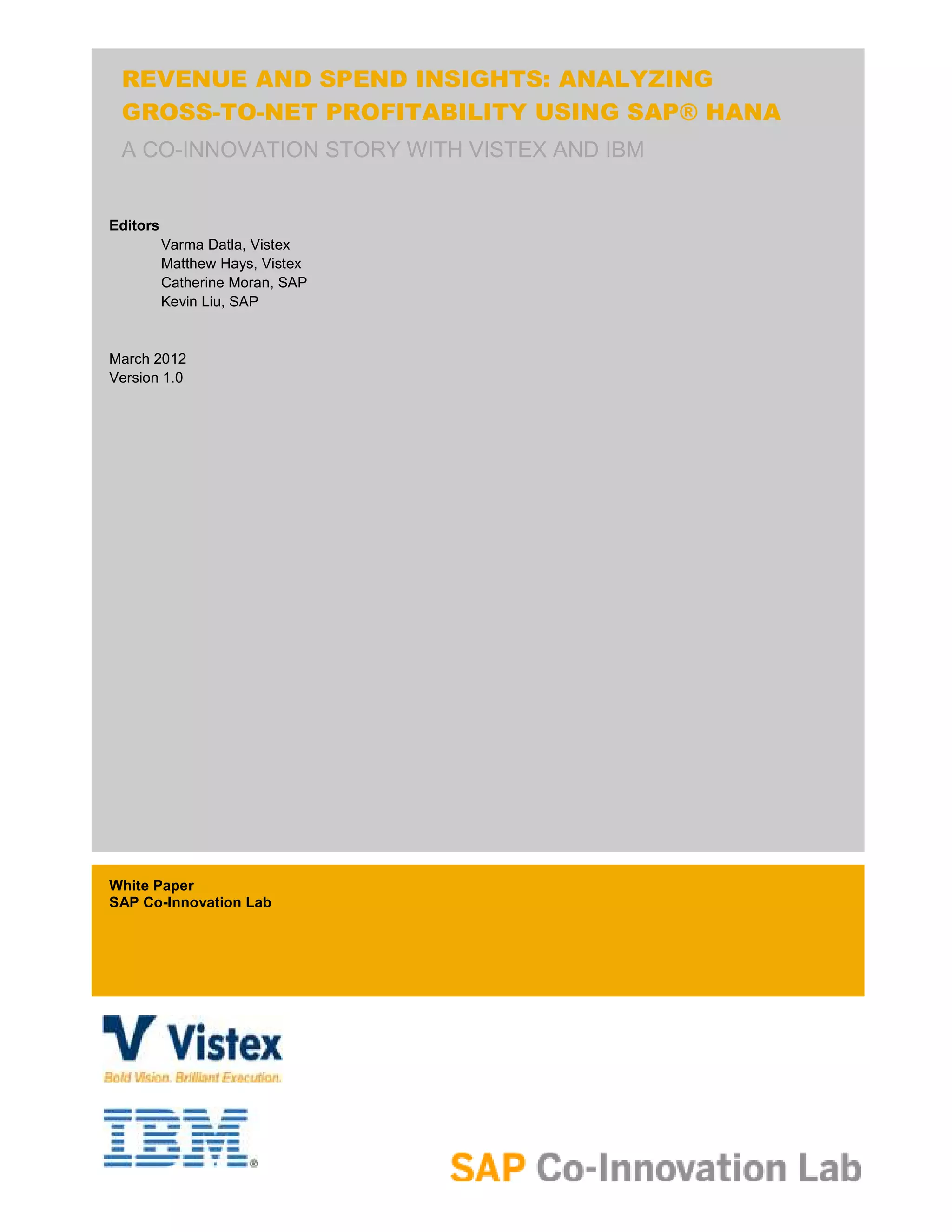 This document summarizes a project between Vistex, SAP, and IBM to use SAP HANA for real-time profitability analytics. The traditional approach of replicating operational data to data warehouses for reporting was slow. With SAP HANA, a proof of concept showed gross-to-net profitability reports could be generated in under one second using 20 million transaction records, versus the minutes required traditionally. The in-memory capabilities of SAP HANA enabled fast, detailed analysis without pre-aggregation.