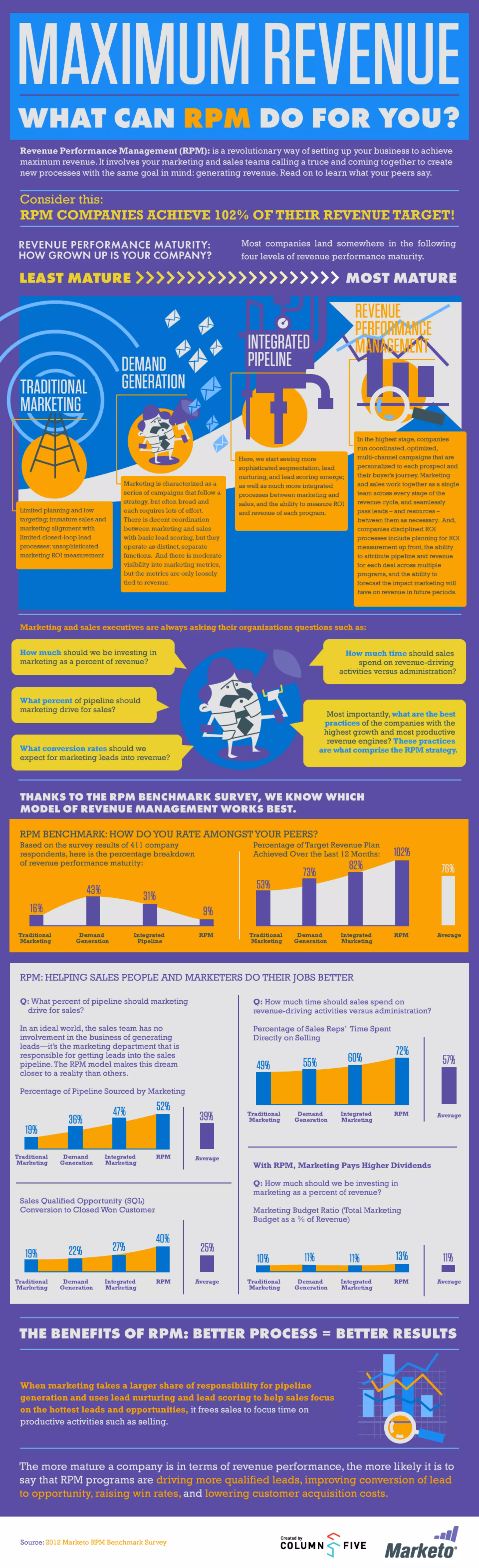 A Unique Infographic Visualizing the Key findings from the Marketo Benchmark Report on Revenue Performance Management (RPM).