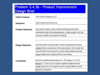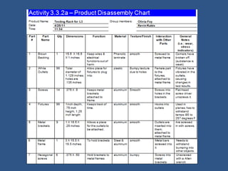 This document provides instructions for observing and analyzing a product as part of a reverse engineering process. Students are asked to select a consumer product and record observations about it without taking it apart. They describe the product's purpose and intended function, sketch its components, hypothesize how it operates based on simple machines, and identify inputs, outputs, and the intended function. Students also note any mechanical components that are visible and anything about the function they cannot identify because components are hidden. The purpose is to understand the product's operation before disassembly.