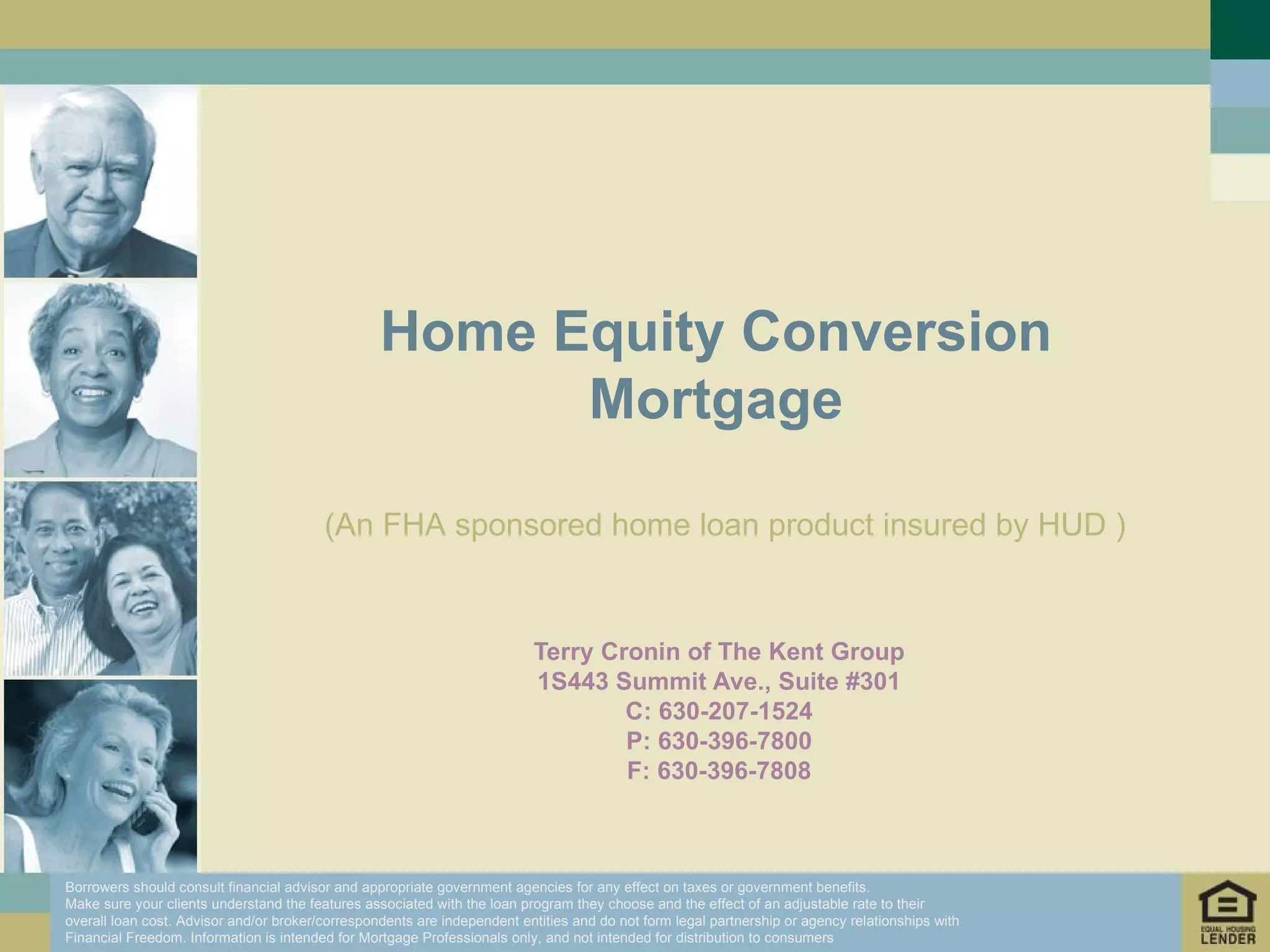 The document summarizes a Home Equity Conversion Mortgage (HECM), also known as a reverse mortgage, which allows senior homeowners to convert home equity into tax-free cash without having to make monthly mortgage payments. Key points covered include: who qualifies for a HECM, how the loan amount is calculated, interest rates, flexible payment options, and the application process. The summary emphasizes that a HECM allows seniors to access home equity for retirement needs while continuing to live in their home.
