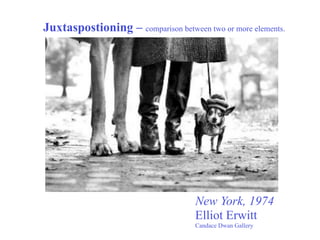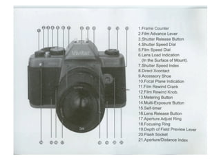 The document discusses various photography concepts including focal point, juxtaposition, and the three basic steps of framing a shot, focusing the camera, and setting the correct exposure by adjusting the shutter speed and aperture. It also covers topics such as film speed, depth of field, shutter priority, and bracketing exposures to ensure the proper shot is captured. The document serves as a helpful primer on fundamental photography techniques.