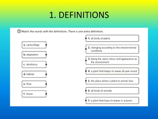 This document outlines the sections of a review for Unit 5, including definitions, identification, finding an intruder, choosing the correct word, matching, and explaining why something is good or bad, with the encouragement to study hard to pass the exam.