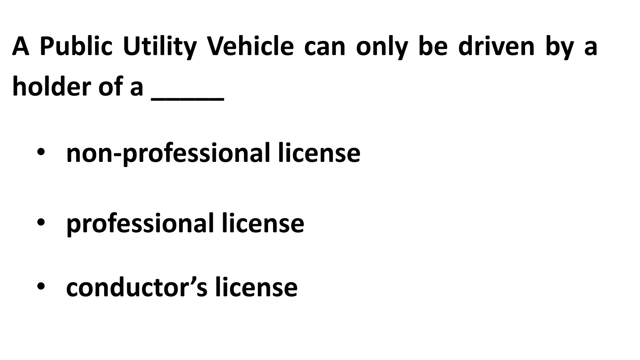 A Public Utility Vehicle can only be driven by a holder of a professional license. An applicant for a professional driver's license should be at least 18 years old. If a driver is convicted of a crime while using a motor vehicle, the driver's license (DL) will be revoked and the driver will pay a fine. A professional driver is any driver who is paid or hired for operating a motor vehicle. When an oncoming vehicle deliberately crosses the centerline to pass another vehicle, you should be alert and be ready to slow down or stop if necessary. If a driver is found to have a fake or counterfeit license, his driver's license shall be confiscated and he cannot secure a driver's license for a period of 6