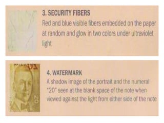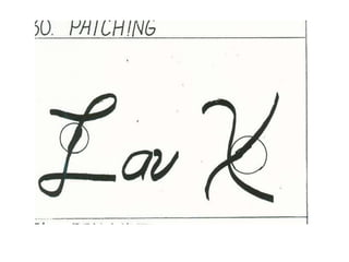 This document provides an overview of different types of documents that may be examined by a questioned document examiner, including public documents, official documents, private documents, commercial documents, and questioned or disputed documents. It discusses signatures, different types of forgeries (simple, simulated, traced), and examines physiological factors and characteristics related to handwriting identification. Key areas covered include the development of handwriting, writing movements, recognizing characteristics like slant, size, proportion, connections between letters, and variations. The document also discusses factors examined in questioned documents like alterations, erasures, and identification through handwriting analysis and comparison to known standards.