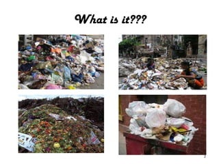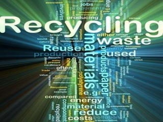 This document discusses waste management and recycling. It explains that waste comes from many sources and can cause environmental and health issues if not properly disposed of. The solution is to follow the 3R's - reduce, reuse, recycle. Recycling programs like WOW collect different types of dry and wet waste from homes and provide benefits. Following waste segregation and other best practices will lead to a cleaner, more sustainable environment for the future.