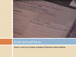 The storyboard document outlines 28 shots that will be used to film a story about a girl named Faye who is auditioning for a dance program. The shots include close-ups, medium shots, long shots, high angles, low angles, pans, zooms, and tilts to show Faye preparing, practicing her dance, performing her audition, receiving feedback, and learning the results of her application.