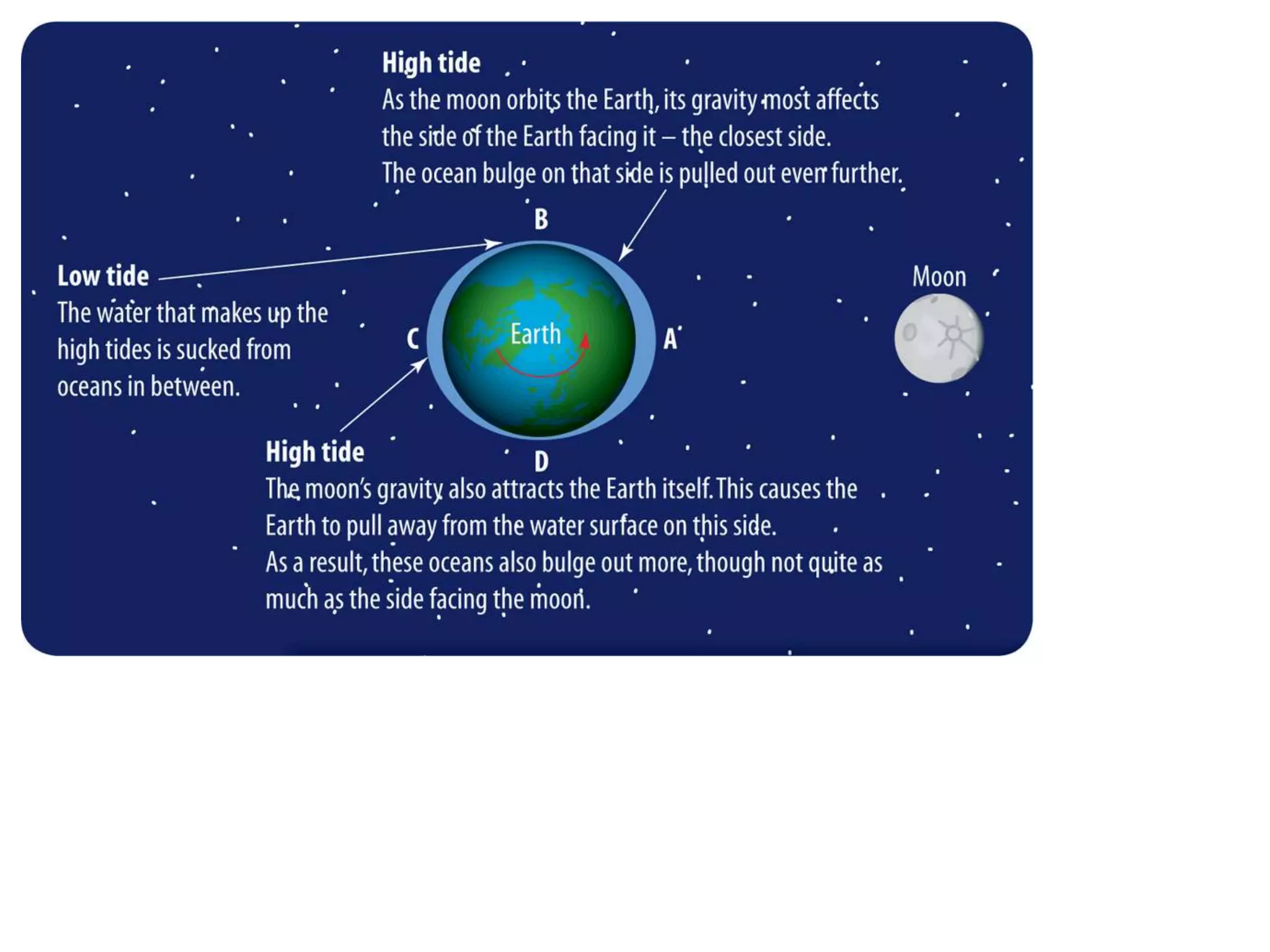 The document discusses the relationship between the Earth, moon, and sun. It explains that the Earth's tilt and orbit around the sun cause the seasons to change. As the Earth orbits, different hemispheres are tilted toward or away from the sun, resulting in summer and winter. It also describes how the gravitational pull of the moon causes ocean tides, with the highest tides occurring during full moons and new moons. Additionally, it explains lunar and solar eclipses, noting that a solar eclipse can only occur during a new moon when the moon passes between the Earth and sun.
